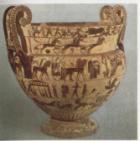 an Traditionen aus mykenischer Zeit an, sowohl in der Darstellung als auch in