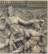 Die Darstellung erinnert an das Pergamonfries.