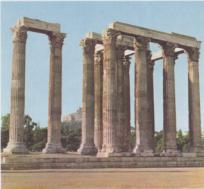 Der Tempel rechts ist das Olympieion, der Tempel des olympischen Zeus in Athen. Gut erkennbar sind die korinthischen Säulen.